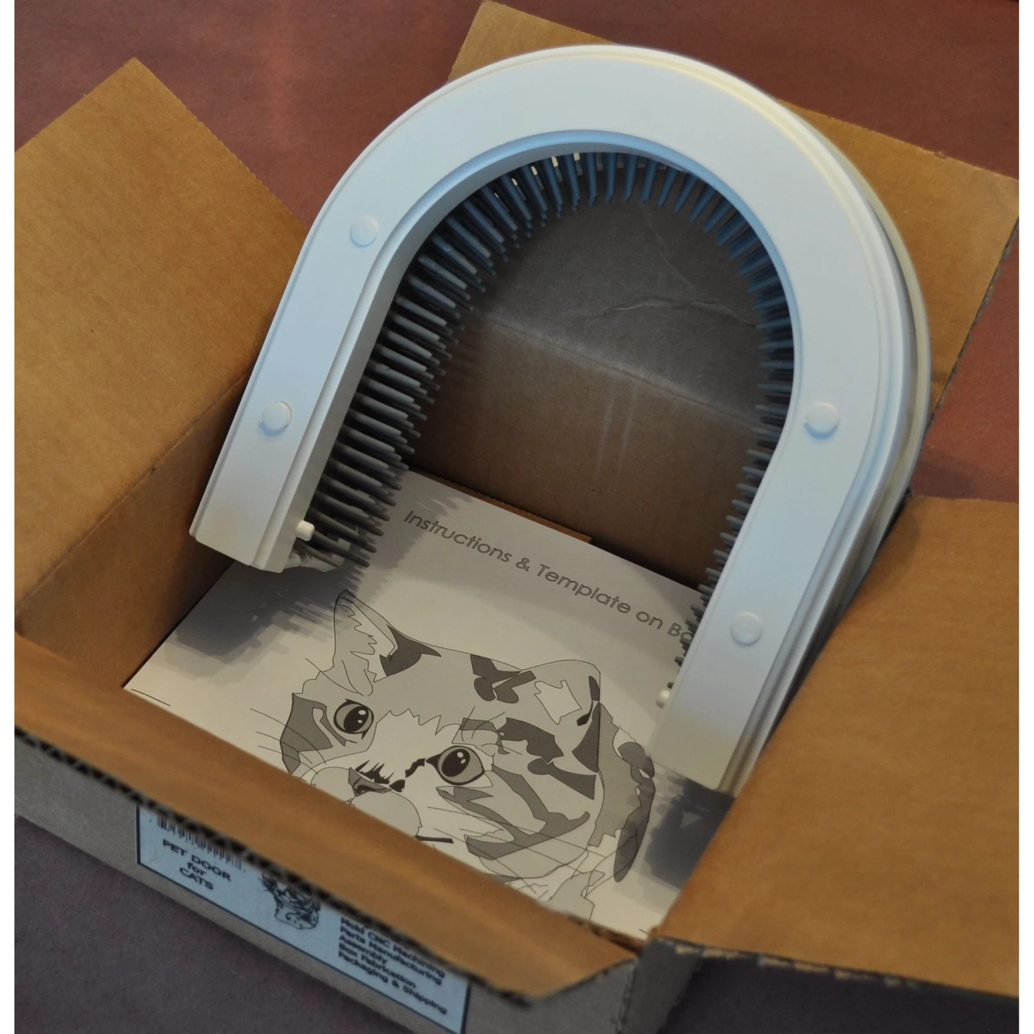 The Cathole ECO Cat Door is a door and a brush all in one! That means your paw-tner can go in and out as she pleases and get groomed at the same time by the soft rubber molded brush. This piece comes fully assembled, so all you have to do is use the template to cut the opening in your door, place the assembly over the opening and tighten the screws!