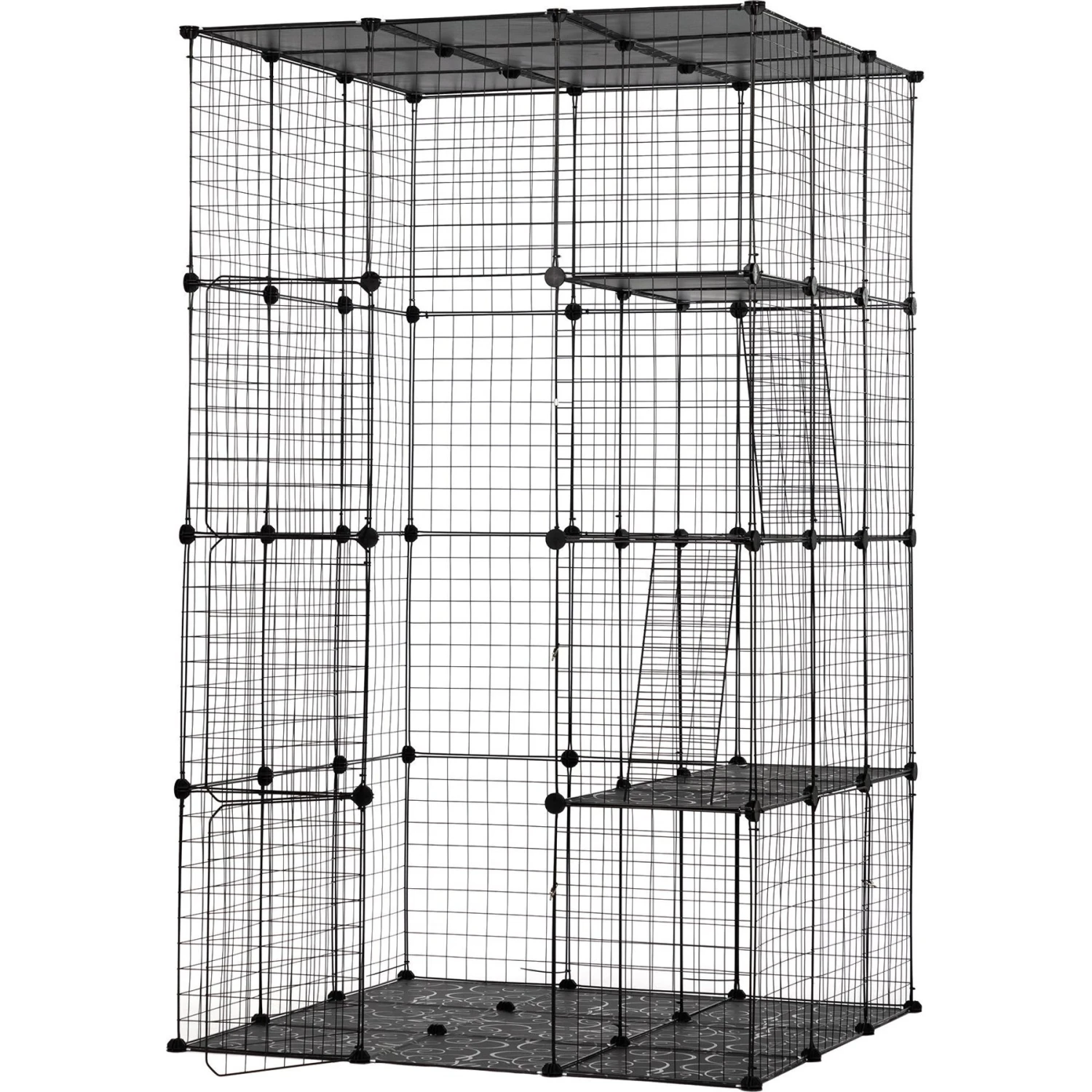Give your kitty the cozy cage of their dreams with the 3-Tier 4-Door Cat Cage Playpen from Coziwow! This spacious home base boasts a lavish interior that can fit several cats and numerous pet supplies. It includes 3 resting platforms with ladders, which help relax your kitty and satisfy their natural climbing instincts. This cat cage is also designed with four doors for easy access alongside U-shaped fasteners to fix it to the wall. It even includes a full-sized resin sheet base and roof with durable wire mesh, which can stand up to repeated play.