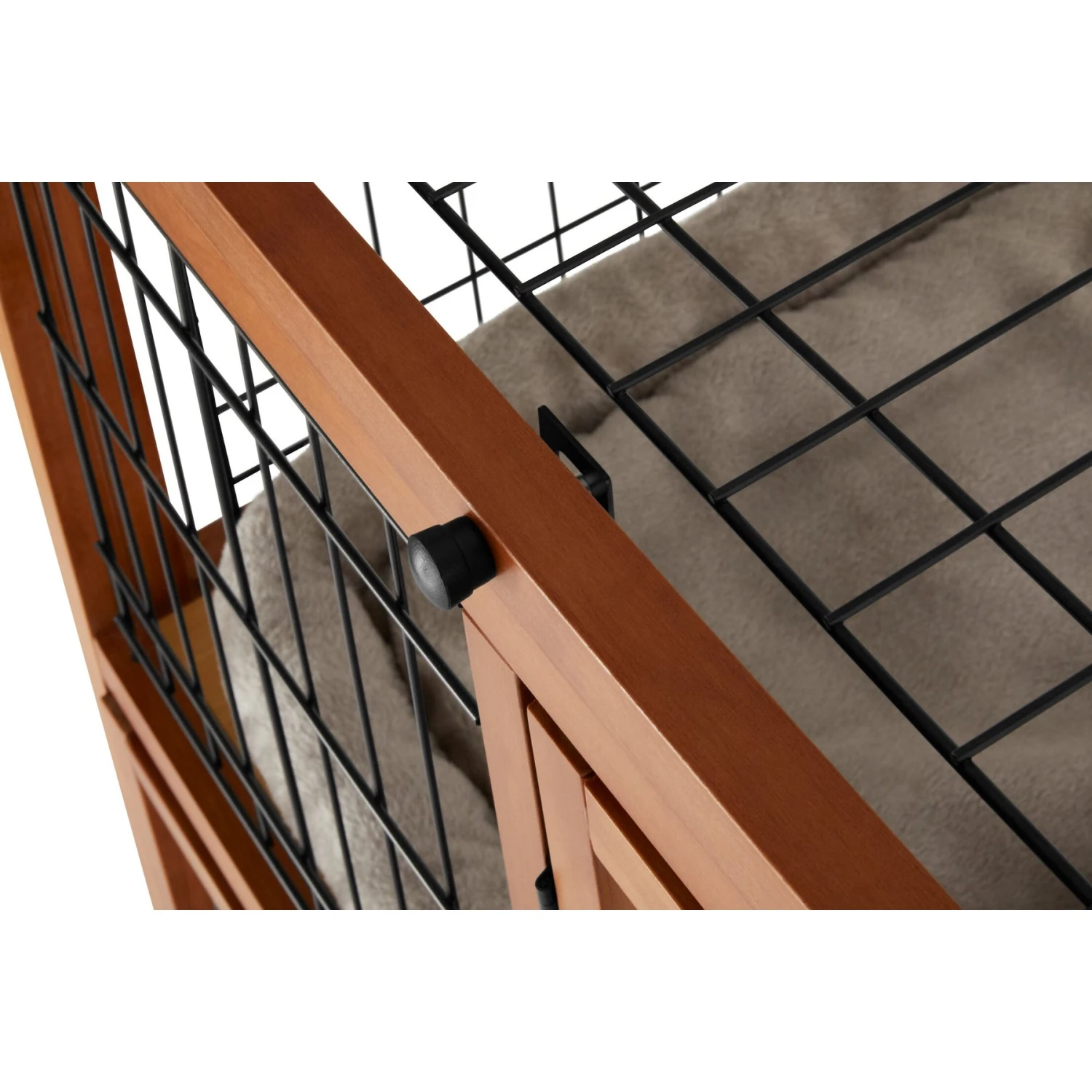 Give your feline friends a home within your home with this collapsible playpen made just for kitties. This playtime retreat features three levels for cats to play and lounge on, so it’s great for a single cat or the whole kitty family. Made with sturdy and durable wood construction and steel wire, it provides hours of supervised fun and looks great with any home décor. Getting your pals in and out is effortless with three side doors and a removable top door. Keeping it clean is also effortless thanks to the removable pan. When not in use, it collapses for easy storage.