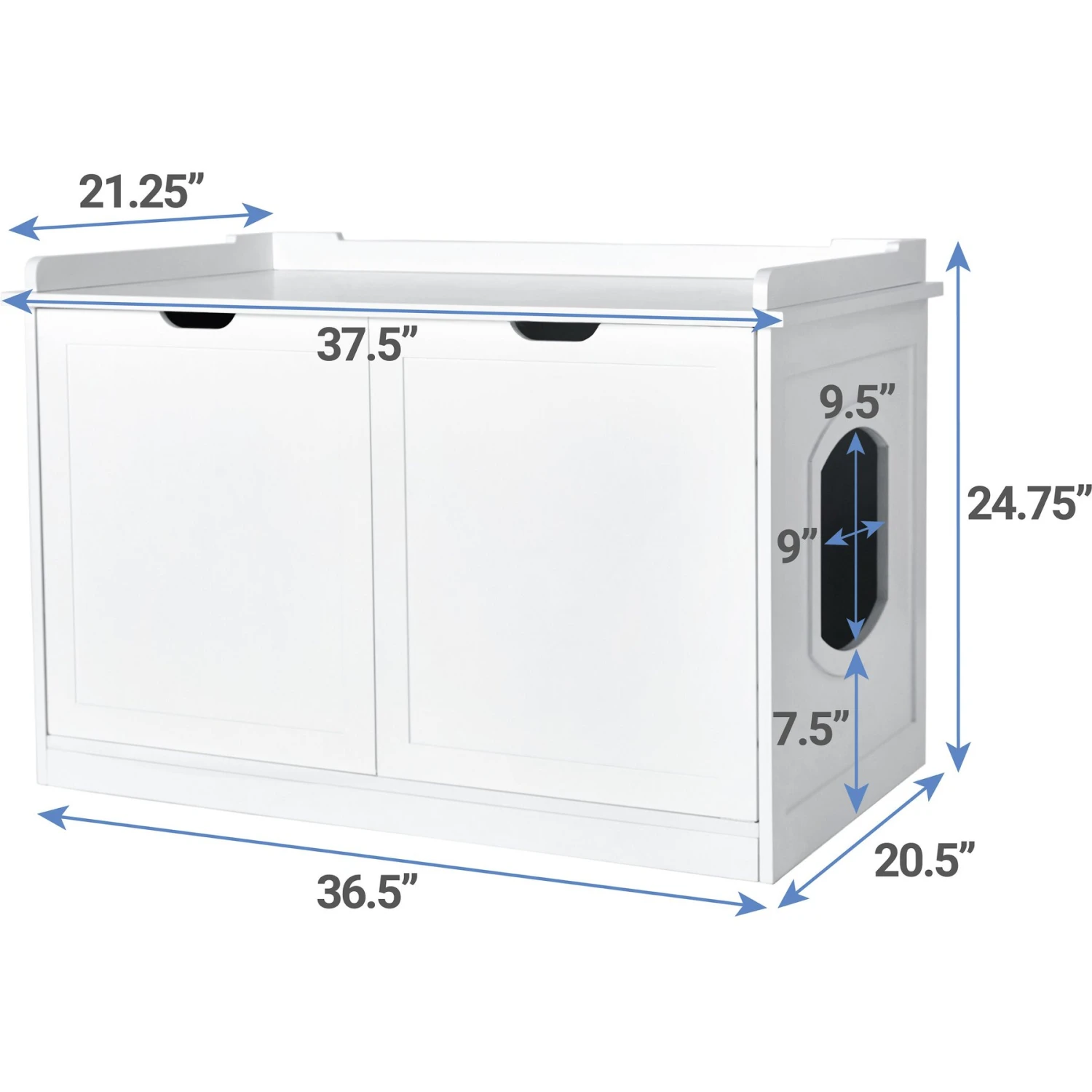 plus built-in doors with hinges that open wide for easy access to the litter box. - Includes removable divider that can be set up in 3 different positions to store essentials like food, treats, cleanup tools or left out to maximize interior space.