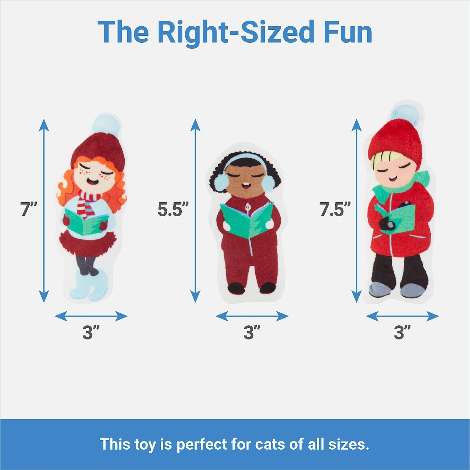 - Plush toys are dressed as adorable carolers who want to make your kitty sing with joy.
