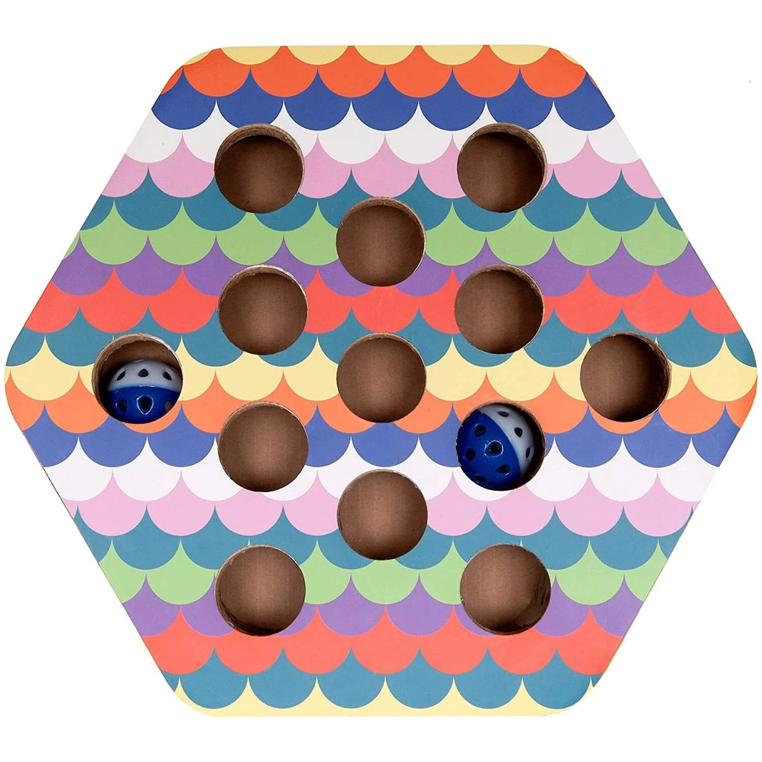 Help keep your kitty’s claws away from your furniture with FurHaven’s Busy Box Corrugated Hexagon Cat Scratcher Toy with Catnip. Your cat can scratch and stretch away with this eco-friendly cat scratcher—it’s made from recycled materials, and is completely recyclable itself! This cat scratcher includes catnip to help lure your feline friend away from your tables and chairs. You can also help keep your furbaby entertained with its interactive busy box design complete with jingle bell balls and holes in the top and sides.