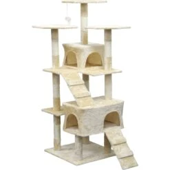The Go Pet Club 63-in Economical Sisal Cat Tree invites your feline friend to play, relax and snooze in complete comfort. Your pal will feel right at home as soon as she steps on this soft faux-fur tree that’s complemented with sisal rope-wrapped posts made for scratching. Three elevated platforms provide the purr-fect surfaces for perching, allowing your girl to sit proudly and rule from above! The tree features two different sized condos, a smaller one for compact cuddling and a large one for spreading out. A hanging toy mouse will swing back and forth to engage your cat in a little mental and physical stimulation!