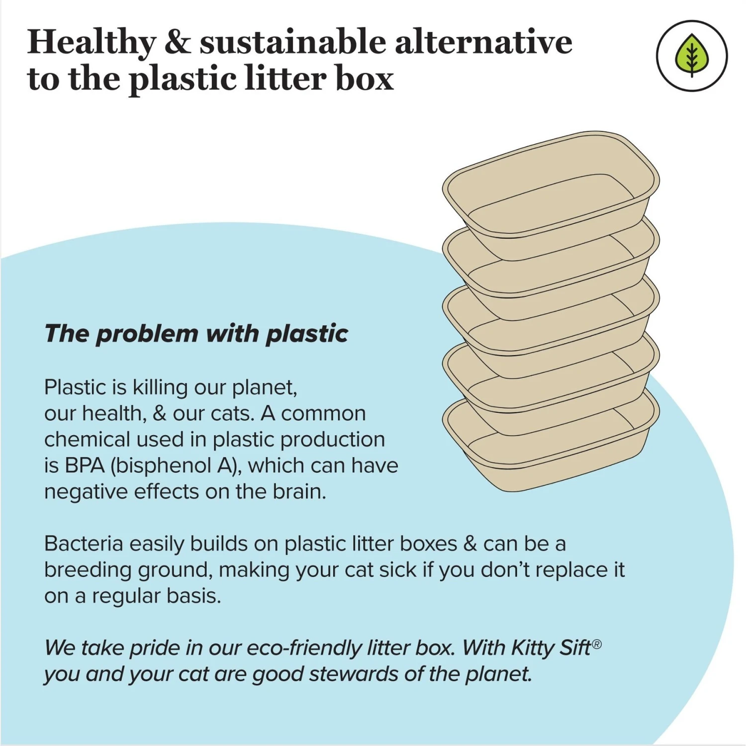 Use in an existing hooded litter box or as a standalone litter box. Pour the desired amount of litter into the Kitty Sift eco disposable litter box. Use a scoop to remove waste daily and dispose of it. Add more litter as needed for reuse; to maximize freshness, moisture, and odor control, replace every 4 weeks as needed.