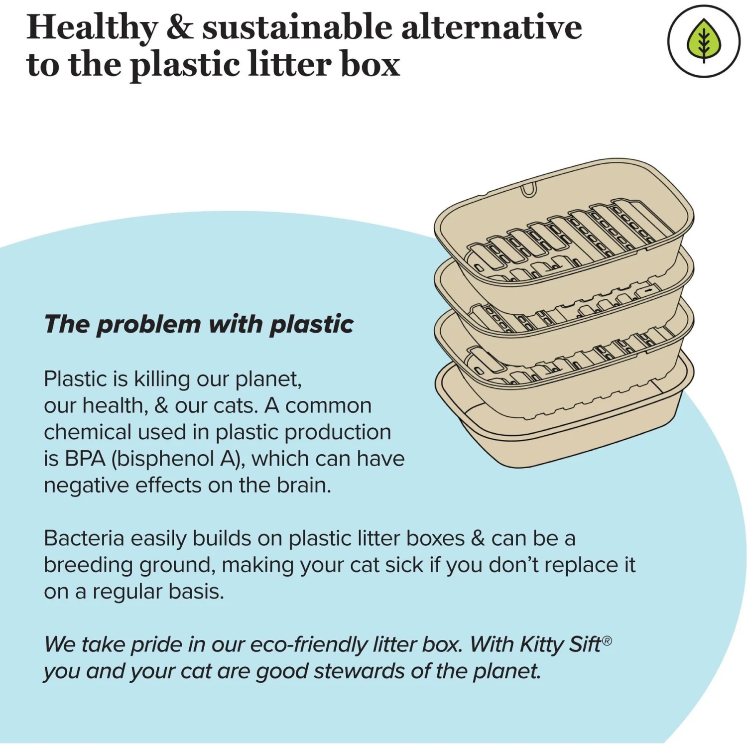 Using plastic stinks! Luckily the Kitty Sift Disposable Sifting Cat Litter Box Kit has found the solution to your cat poo troubles. Your eco-friendly kitty litter kit comes with the litter box and disposable sifting liners. These products are recycled from post-consumer waste cardboard and made with breathable materials. That means you’ll have a hassle-free, odor-reducing litter box that holds up for weeks! You can get plenty of use out of your durable and water-resistant box and liner before their eco-friendly disposal. Scooping, scraping and scrubbing will be a thing of the past with this paw-some product!