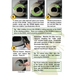 - Fill drum with 2 3/4 inches of your cat’s favorite clumping litter (about 13 cups) and place drum on base.