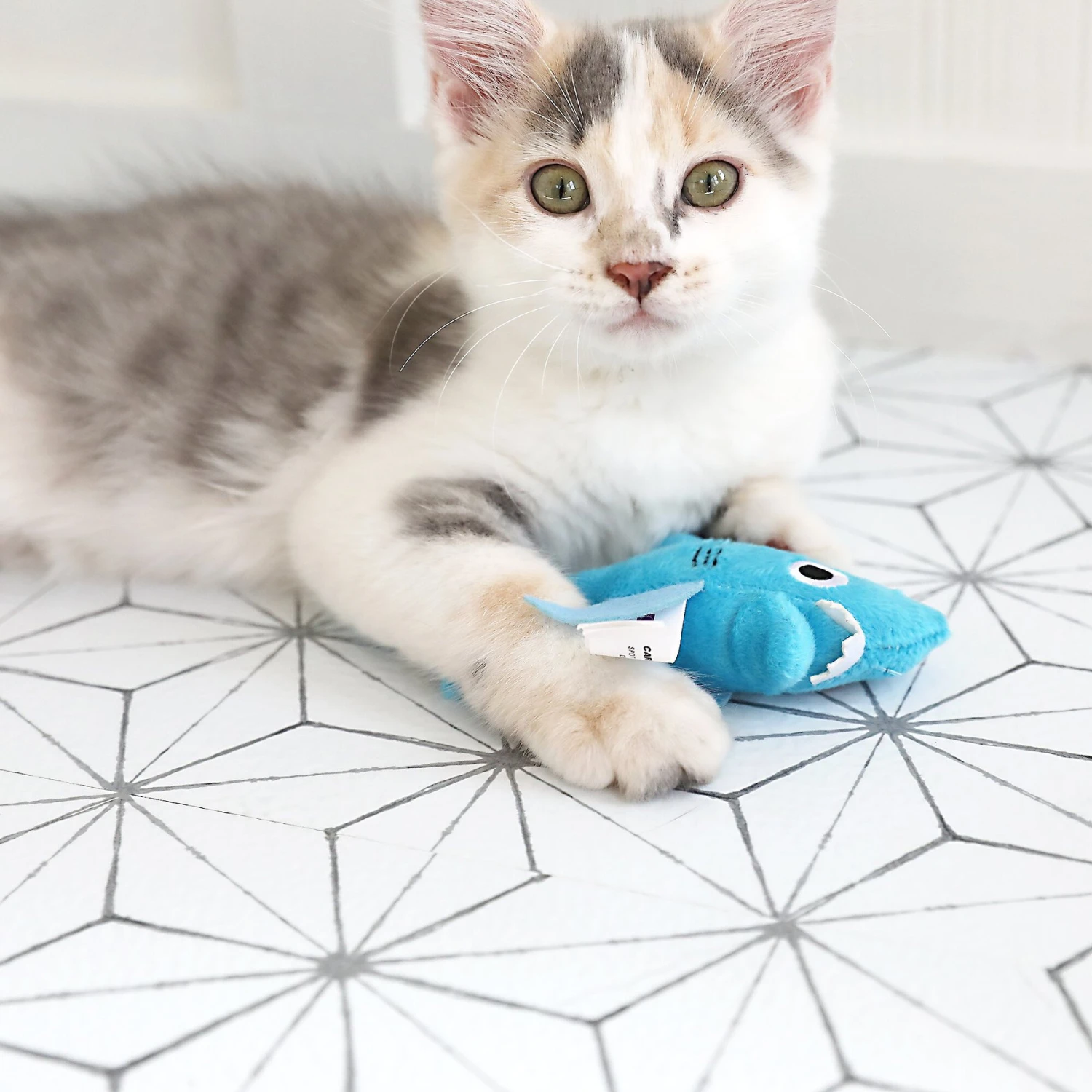 Give your furry friend a wild and wacky plaything with the Shark Biter Catnip & Silvervine Cat Toy from Mad Cat. This plush toy is filled with a unique blend of premium catnip and silvervine to entice your kitty to play. Both the catnip and silvervine are pure and pesticide-free for the safety of your paw-tner. This toy also features multiple textures to enhance playtime for your companion. Ideal for tossing, batting, kicking and cuddling, Mad Cat Shark Biter Catnip & Silvervine Cat Toy will keep your cat occupied for hours to come.