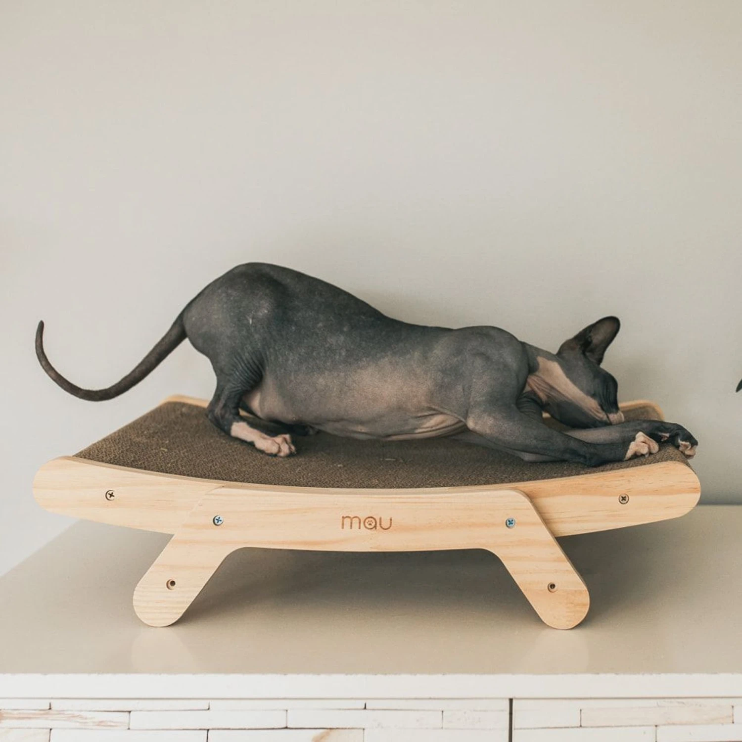 Get your cat stretching those claws on a scratcher that could just as well be a work of art, with the Mau Lifestyle Emory Cat Scratcher. It’s one way you can keep sharp nails off of your furniture with a pop of unique style—this scratcher blends seamlessly with your home decor while being reusable and refillable! The adjustable wooden frame is sturdy and easy to prop up in three positions, making it easy to stretch on or nap on. Plus, the rounded pad eliminates pesky sharp edges while making it totally easy to replace.