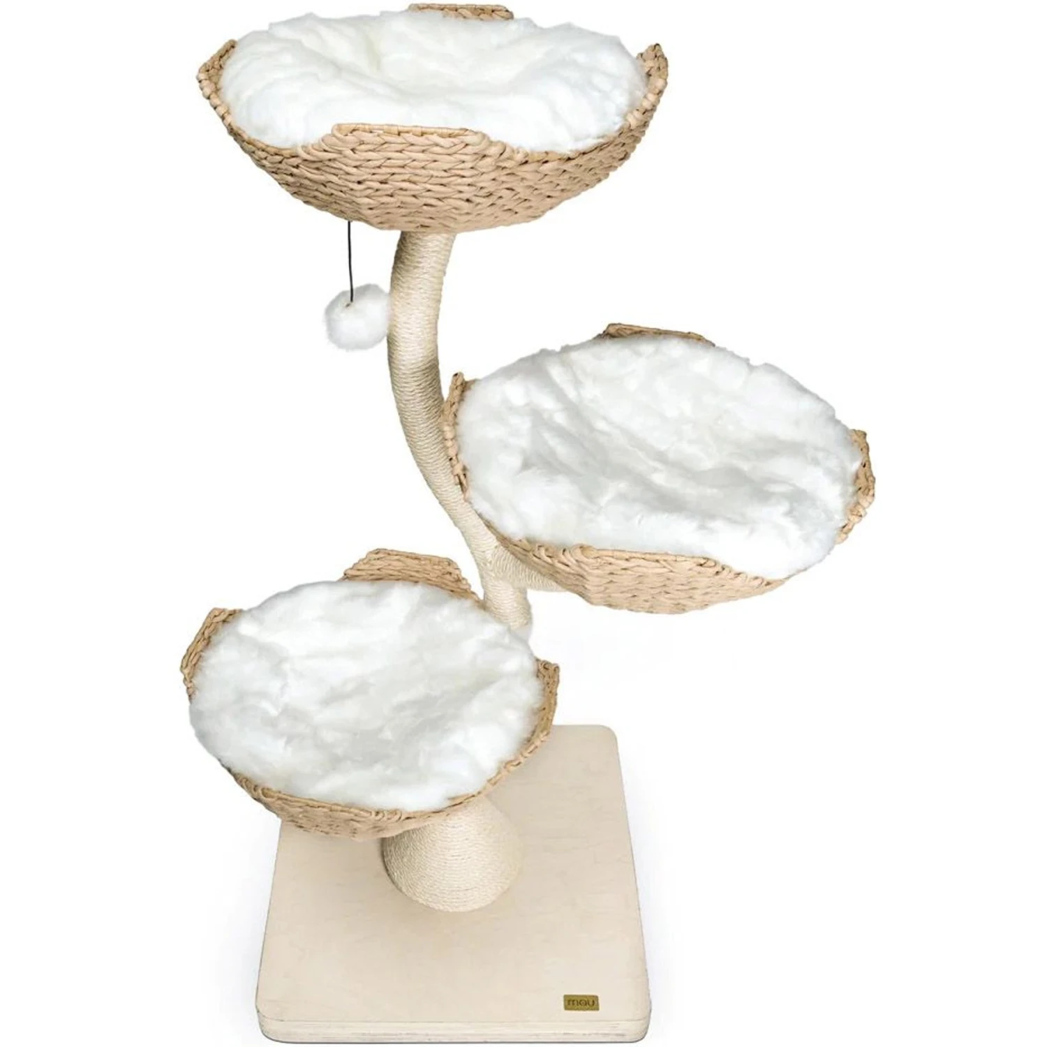 Give your feline fur-iend a paw-fect place to rest up after a long day of play with the Mau Lifestyle Ivy 3 Cat Bed! This stylish bed features three cozy baskets at varying heights ranging up to 53 inches, so your kitty can find her purr-fect perch position. It features a sisal-wrapped, curved trunk and hanging pom-pom toys for added engagement. It also features removable, machine washable plush cushions, which is a perk for pet paw-rents. This handy cat tree is sure to give your kitty companion plenty of places to lounge and play!