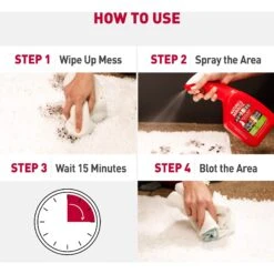 - Also works to discourage re-soiling by removing the odor of pet messes.