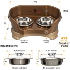 The Neater Feeder Deluxe from Neater Pets solves the problem of messy cats spilling food and water on your floors. It’s designed with protective walls to contain splashes and spills from an inadvertent kick or an excited pet. The revolutionary system holds spilled food in an upper reservoir while spilled water flows down a gentle slope through a filtering system into a lower reservoir. The bottom container can safely hold more than an entire bowl of spilled water, keeping it off your floors until you are ready to dispose of it. Keeping the spilled food in the upper reservoir, off the floor, not only saves you work, but also keeps it clean for reuse. The Neater Feeder is also an elevated feeder. Using raised bowls helps improve digestions and reduces strain on your cat’s neck and joints, while also helping to keep ants and other pests out of her food. The Neater Feeder Deluxe Cat is perfect for cats of all sizes. It comes with a 1 cup shallow food bowl and a 1.5 cup shallow water bowl. The shallow bowls are designed to be gentle on cat’s sensitive whiskers and the larger water bowl is so that your cat never goes thirsty. Make mealtime healthier and cleaner with the Neater Feeder!