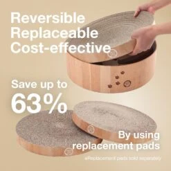 Necoichi Cozy Cat Scratcher Bowl Toy is a circular shaped bed made from 100% recycled paper and designed with a replaceable scratching pad that’s also reversible. Your kitty companion will enjoy curling up in this ultra-modern piece, and between naps she can scratch to her heart’s content. This piece is completely safe for even nibble-happy cats, as it’s made with non-toxic cornstarch-based glue.
