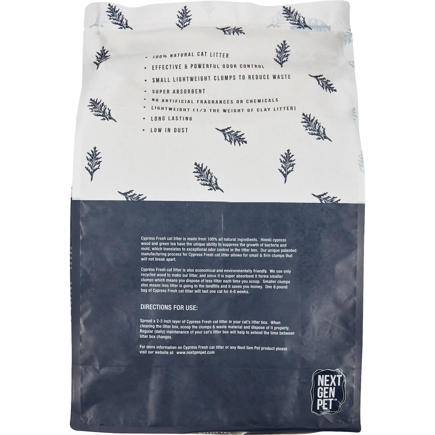 Next Gen Pet Products Cypress Natural Odor Control with Green Tea Clumping Cat Litter uses nature’s technology to control odors, not harsh chemicals or artificial fragrances. Cypress combines the power of Japanese Hinoki wood and green tea leaves to fight bacterial growth that causes litter box odor. It’s safe for you and your pet with a low-dust formula and no silica dust that might irritate the respiratory system. The small size helps reduce litter tracking, plus it’s flushable and compostable, so clean-up is a cinch!