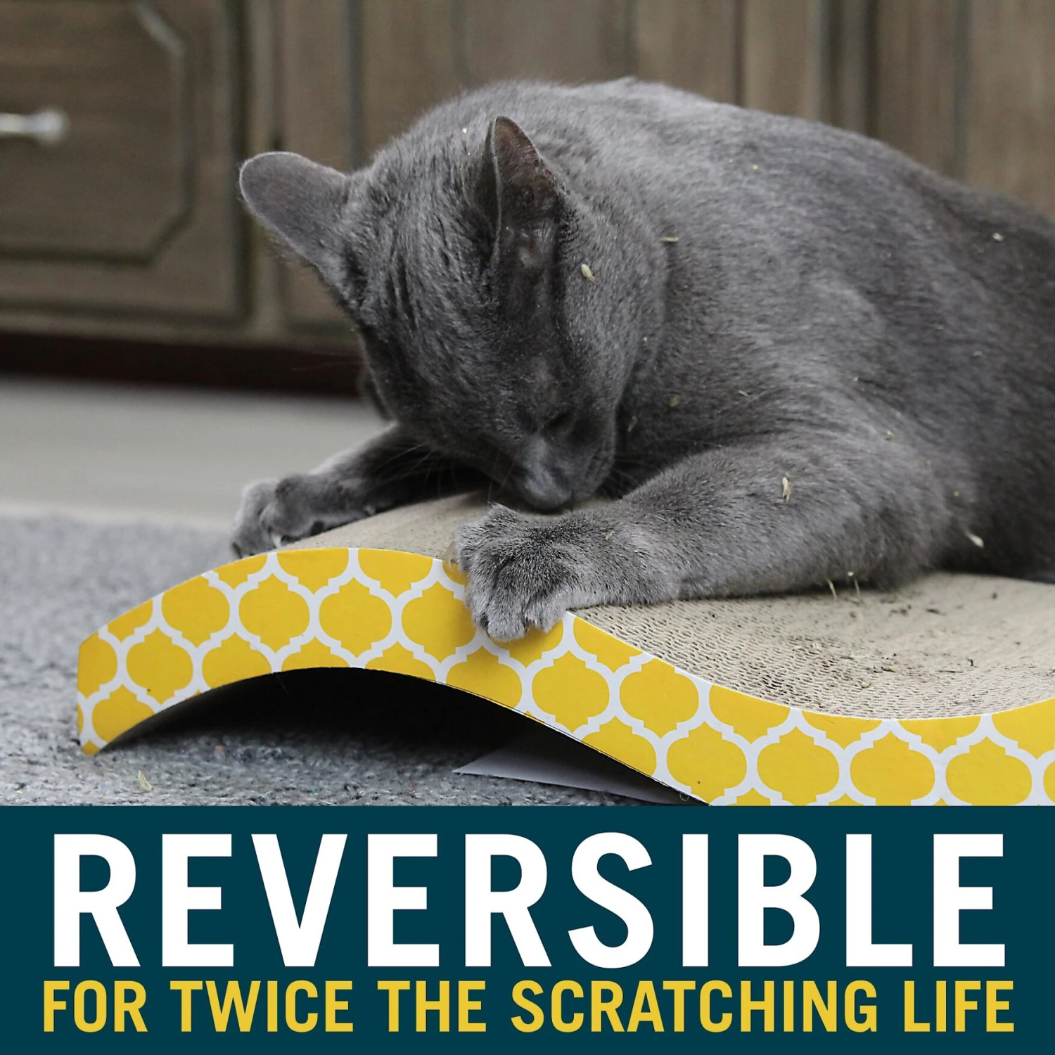 Make waves when it comes to meeting your kitty’s scratching needs with the OurPets The Wave Curved Cat Scratcher. Scratching is a daily necessity for cats, as it supports healthy claws and paws by helping your pal shed the outer nail layer. Your kitty will love the tight nooks and crannies on the corrugated surface, making it the purrfect place for everyday scratching—instead of your furniture! It also comes with a packet of North-American-grown catnip that’s sure to make claw grooming time even more exciting. When your pal is not scratching, the wave design makes for a perfect place to stretch, lounge and snooze. Plus, when one side starts to show wear, simply turn over for a fresh scratching.