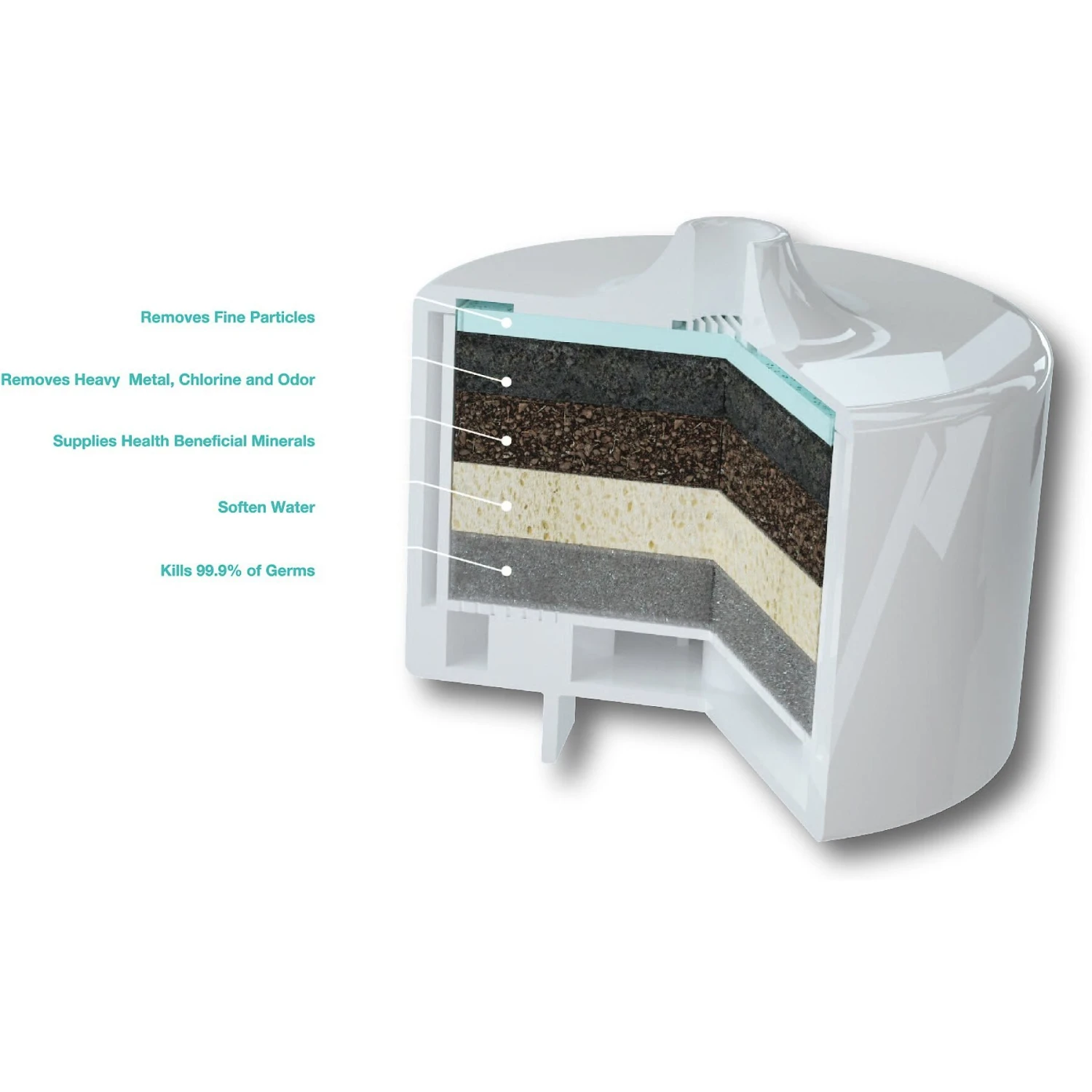 - Designed with a 5-in-1 filter that helps remove heavy metals and germs.