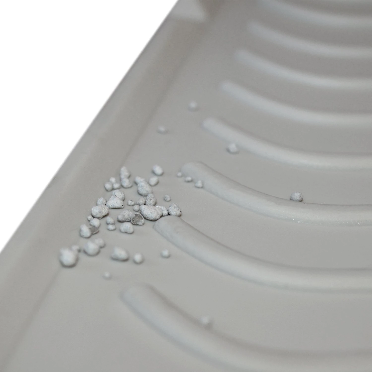 Place mat up against litter box exit in portrait orientation for max coverage. Fold mat, and pour clean litter back into box. Sweep, vacuum, or sponge clean.