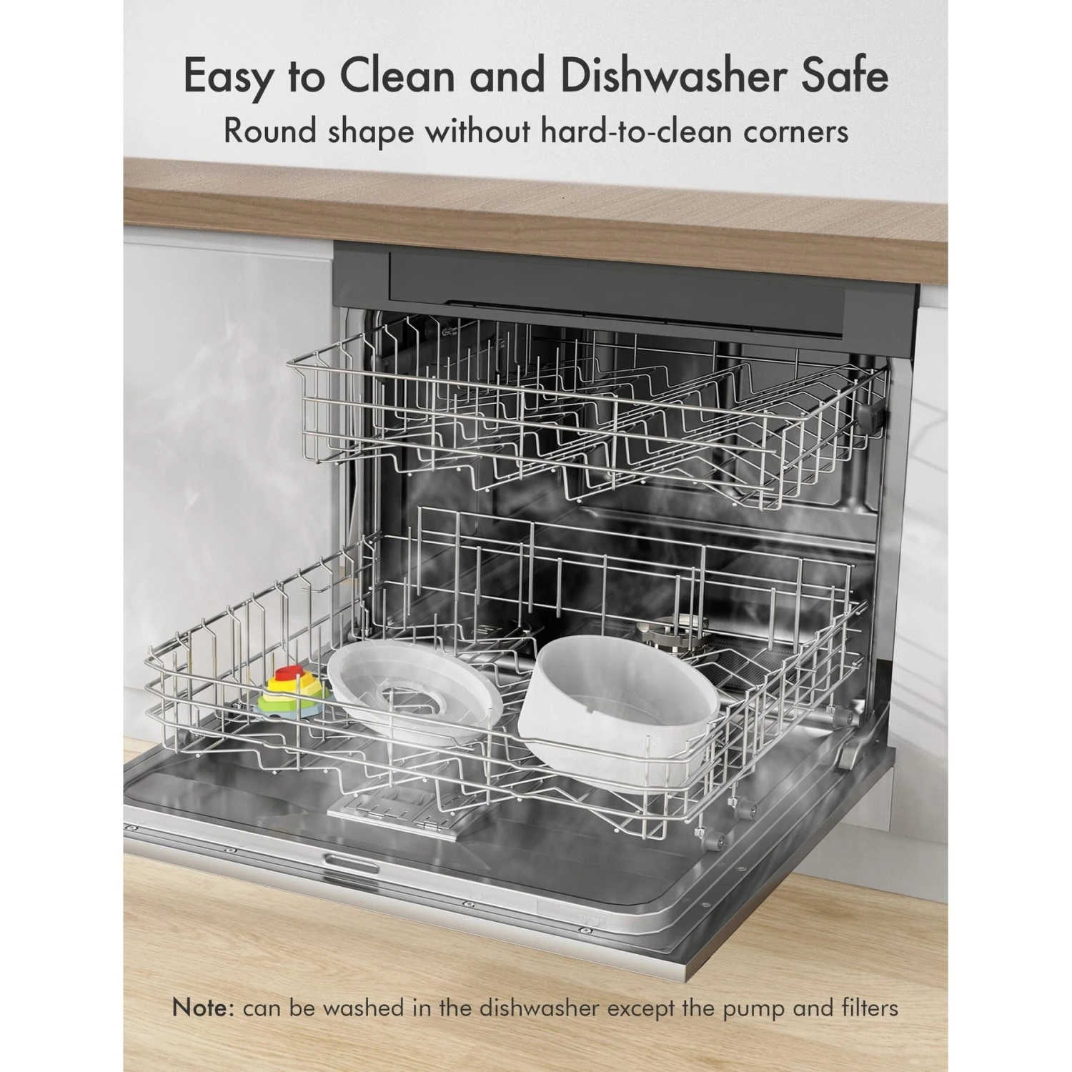 The PETLIBRO Ceramic Cat Water Fountain encourages your kitty to drink up while providing a safe water source, too. The fountain is made of ceramic material, so you don’t have to worry about your furbaby ingesting harmful metals. There’s also no need to worry about a plastic fountain releasing harmful materials during high-temperature disinfection. The ceramic raw material is alpine clay, which is pollution-free. Plus, triple filtration helps to ensure your furbaby gets pure, clean water and nothing else. The ceramic even helps to prevent feline acne. A low water reminder means it’s easy to make sure your best friend always has plenty of water to drink.