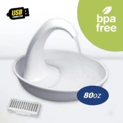 Pioneer Pet Swan Cat Drinking Fountain, White—Keep your kitty hydrated with the stylish Swan Cat Drinking Fountain from Pioneer Pet. It allows for your furry friend to sip on the flowing water and it falls from the slender neck and into the basin. The charcoal filter ensures clean water and it holds up to 80 ounces of water. Made from premium plastic, this fountain is dishwasher safe and easy to clean. It also offers a USB connection as well as a standard wall plug to run. Whether you have one or multiple paw-tners, the Pioneer Pet Swan Cat Drinking Fountain will entice your little ones to drink more water.