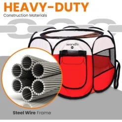 - Soft playpen comes with a collapsible, dishwasher-safe pet bowl that’s paw-fect for your BFF’s food or water.