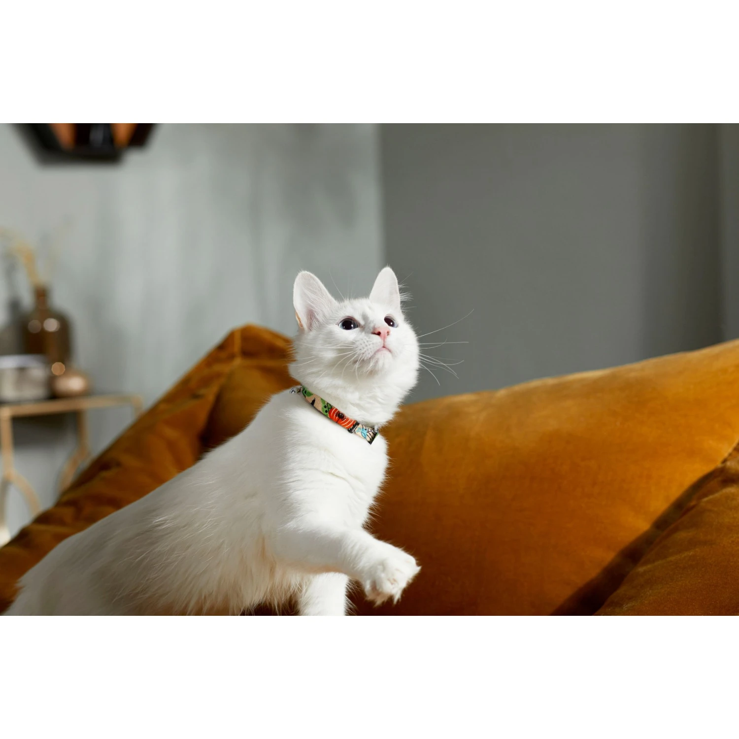 STAR WARS THE MANDALORIAN GROGU Pumpkin Cat Collar, 8-12 — Add some spooky style to your cat’s look with this STAR WARS The Mandalorian The Child Pumpkin Cat Collar, featuring pumpkins and The Child from Star Wars: The Mandalorian. This collar is designed with your fur friend’s comfort in mind, featuring high-quality polyester webbing and sturdy plastic hardware with rounded edges that don’t poke. The collar includes a metal ring for an ID tag and an optional wildlife safety bell that lets other animals know when your kitty’s prowling around the galaxy. It’s adjustable too, fitting cats eight pounds and over with necks eight to twelve inches around. This adorable intergalactic aesthetic will rock your kitty’s planet, only available at Chewy!