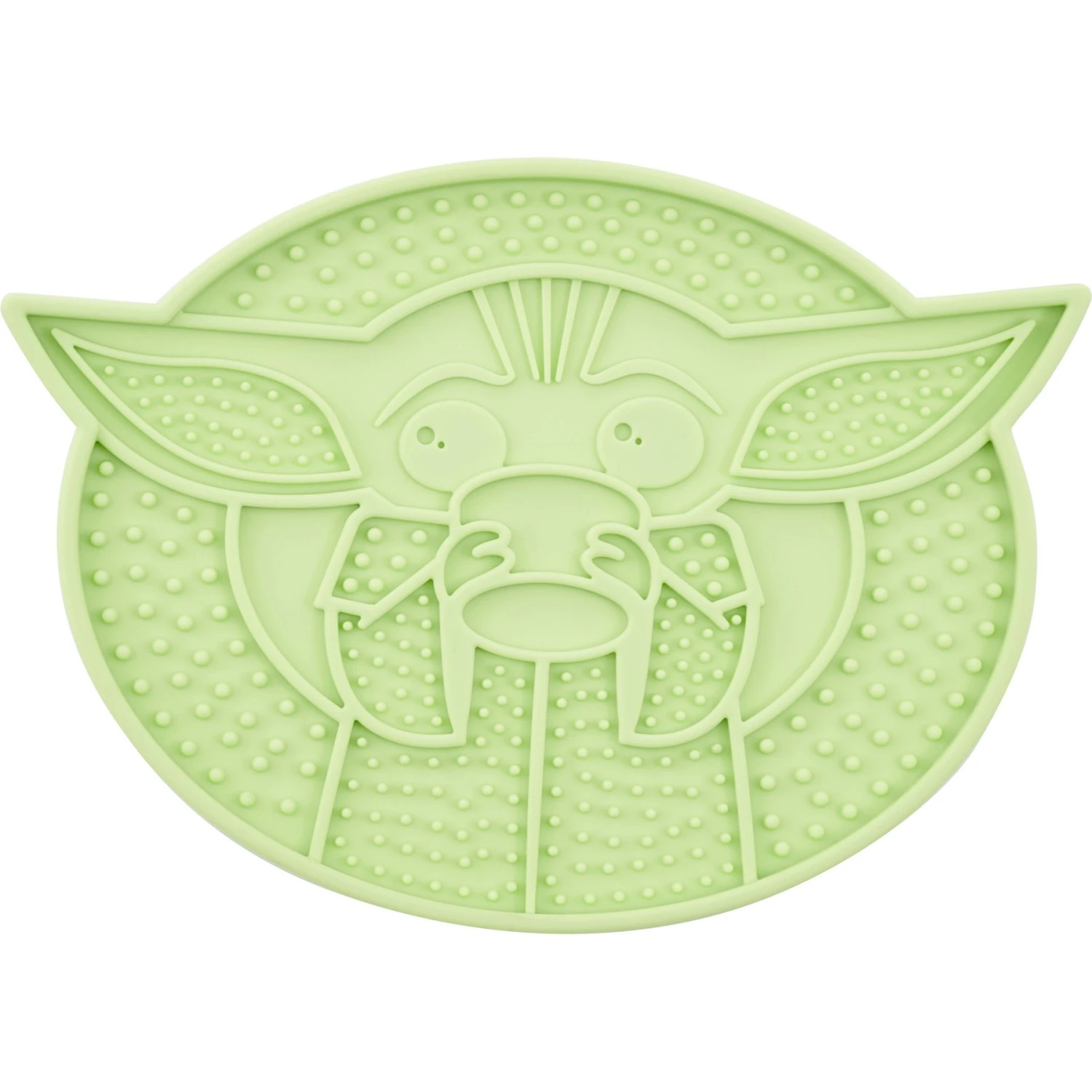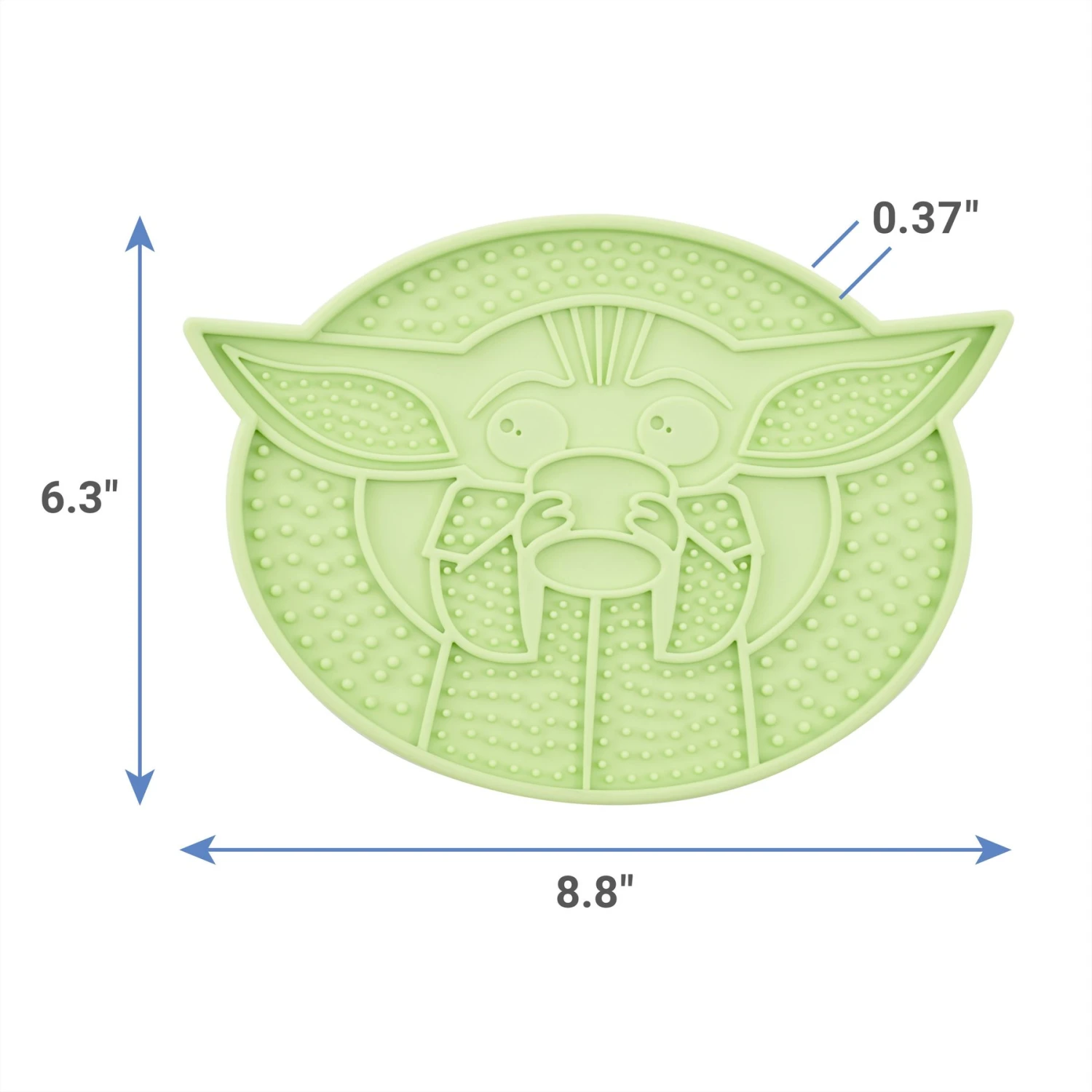 STAR WARS THE MANDALORIAN GROGU Silicone Dog & Cat Treat Lick Mat, Green — Give your Star Wars: The Mandalorian™ fan a new way to treat with this dog and cat treat lick mat, available only at Chewy! This is a fun way to treat or distract your pet when needed, like when it’s time for a little grooming session. Just spread a treat such as peanut butter over the textured mat, featuring Grogu, and let your bestie have at it. It’s dishwasher safe when they’re done licking away all the tasty treats, and there’s a matching food mat available to complete your pet’s dinnerware look.