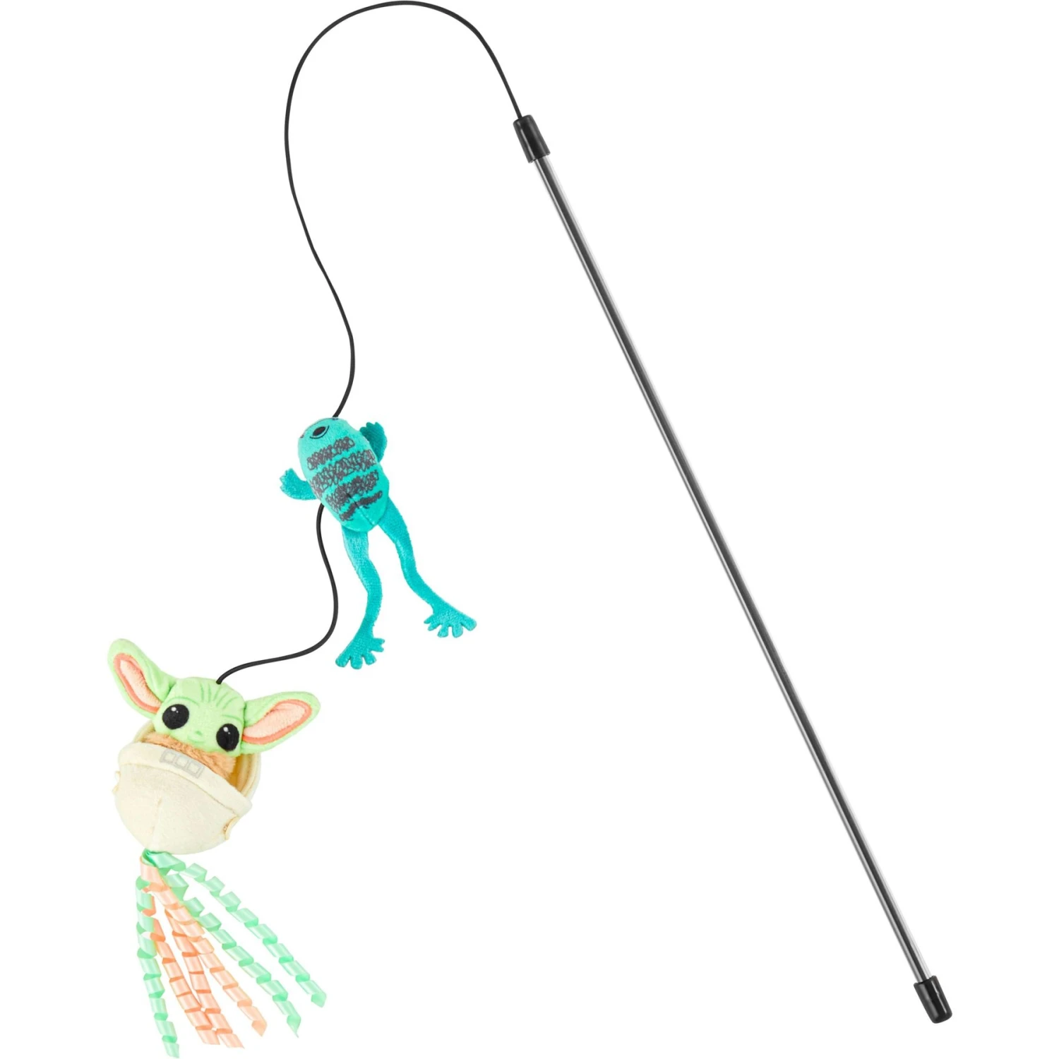 STAR WARS THE MANDALORIAN GROGU Cat Toy with Catnip — Introducing your kitty’s new best buddy—a Grogu plushie, oh, and a cute leaping frog! This plush, bouncy duo is ready to bring on the fun for your feline fan. No bored cats on this side of the galaxy. Just wave the wand around and watch your pal leap for the cutest bounty ever. Plus, there’s catnip to really get your kitty engaged in all the games. Available only at Chewy.