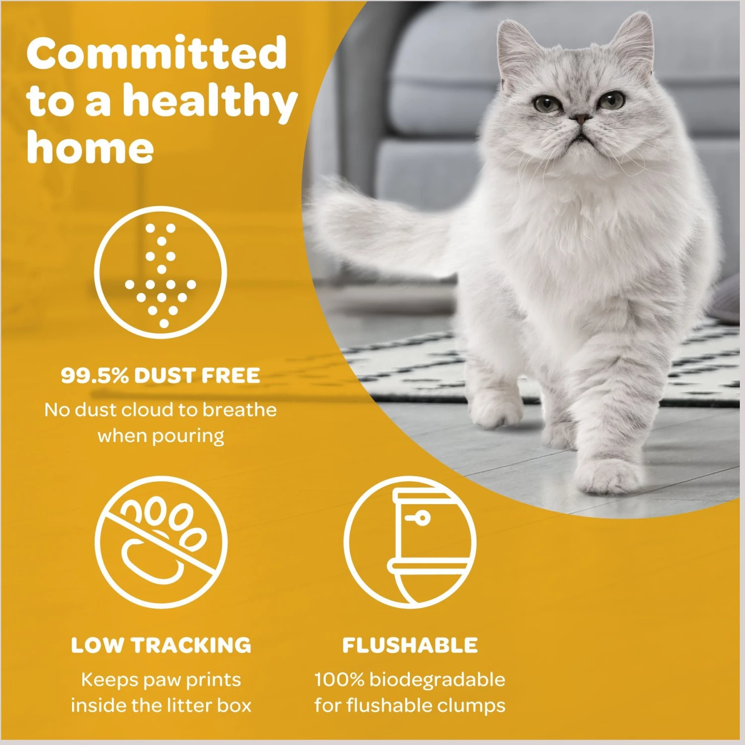 | Litter Feature | Natural, Multi-Cat, Clumping, Odor Control, Dust Free, Low Tracking, Flushable, Lightweight |