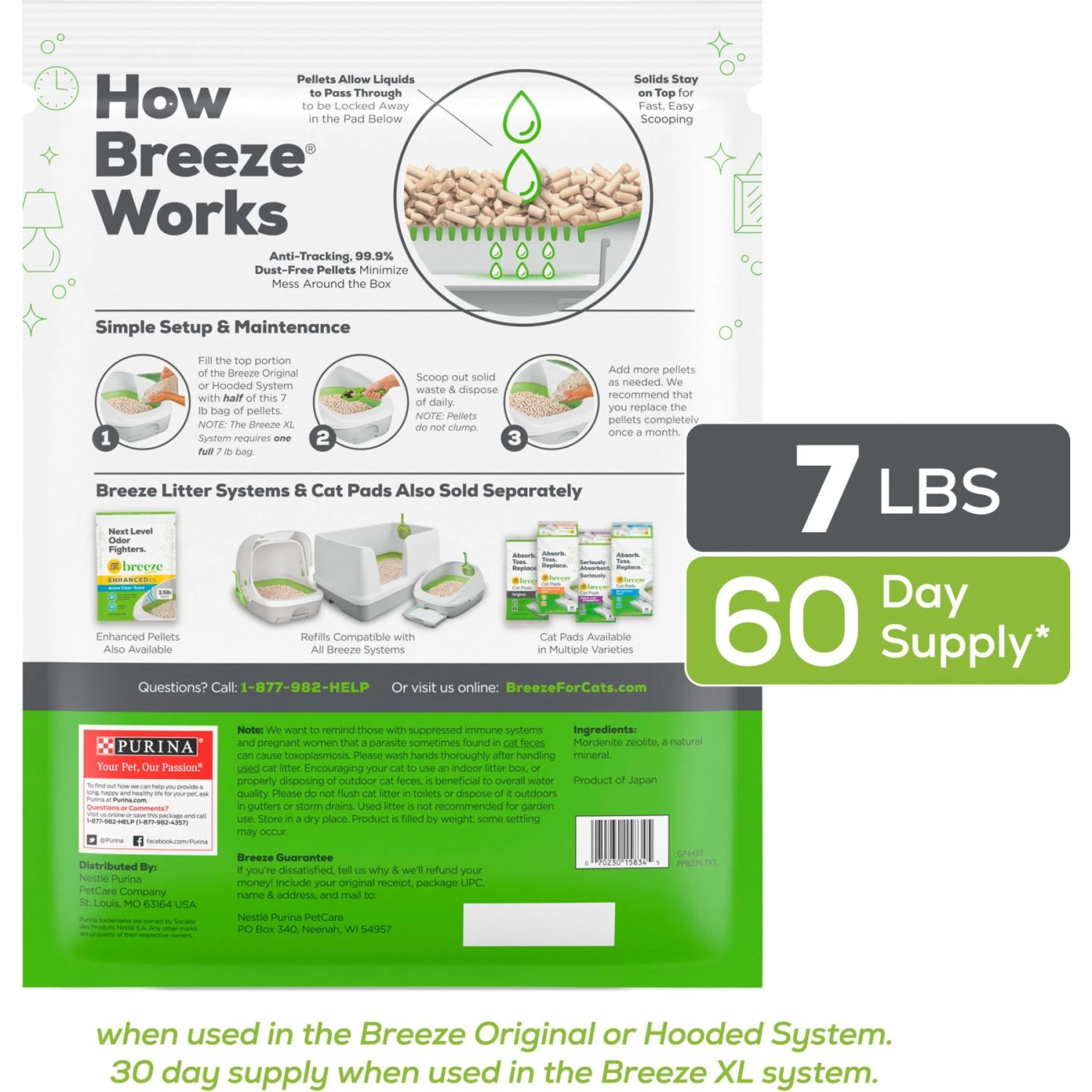 - This bag of mess-minimizing Breeze litter pellets lasts up to one month and is designed to work with the Tidy Cats Breeze litter system (sold separately).