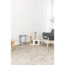 The TRIXIE Valencia 28-in Cat Tree & Scratching Post provides endless opportunities for cats to play, explore, scratch or just relax. Your cat can sharpen her claws on one of two scratching posts instead of on your furniture or carpet, giving her a healthy outlet for her scratching instincts. All posts are covered in durable sisal that’s made to withstand extended scratching. If a nap or place to hide is in order, your cat can crawl inside the kitty condo, covered with plush inside and out. And when your cat is feeling spunky, she can jump, climb or perch atop one of two plush covered platforms and lie in wait for unsuspecting prey to pass by or simply enjoy the view. There’s even a dangling pom-pom toy that’s sure to pique your playful cat’s interest. This comfortable cat tree and scratching post combination is suitable for cats of all ages and activity levels.