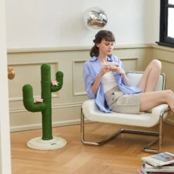 - Bright colors and a functional design make this cactus the purr-fect playground and home decor!