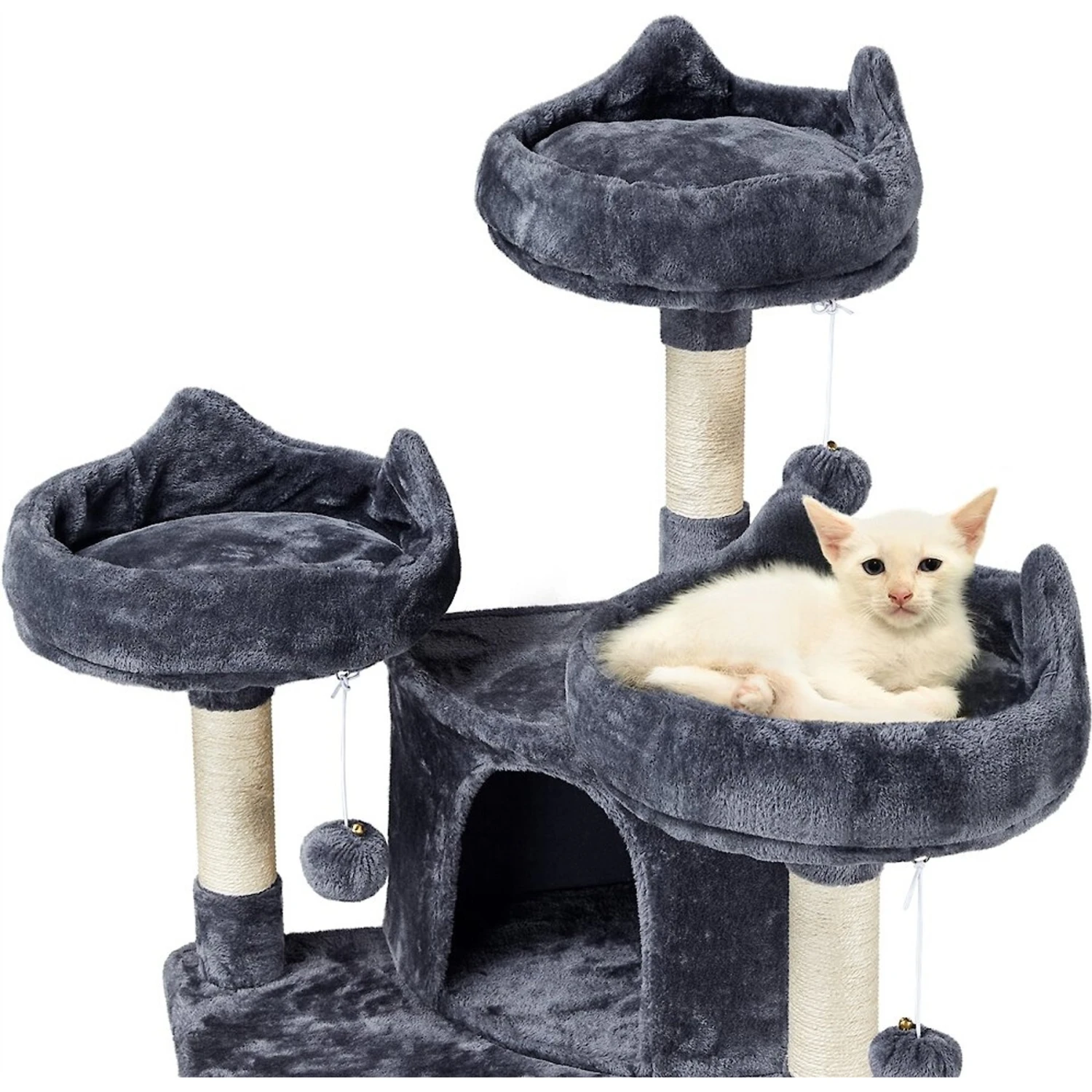 Cats are healthiest when they have mental and physical stimulation–and you can provide them with that through the Yaheetech Multi-Level 68.5-in Cat Tree. It’s made from soft materials supported by durable plywood, and there’s multiple spots for playing, sleeping, and exercising. Bonus? The three perched platforms at the top are designed to look like cats’ ears.